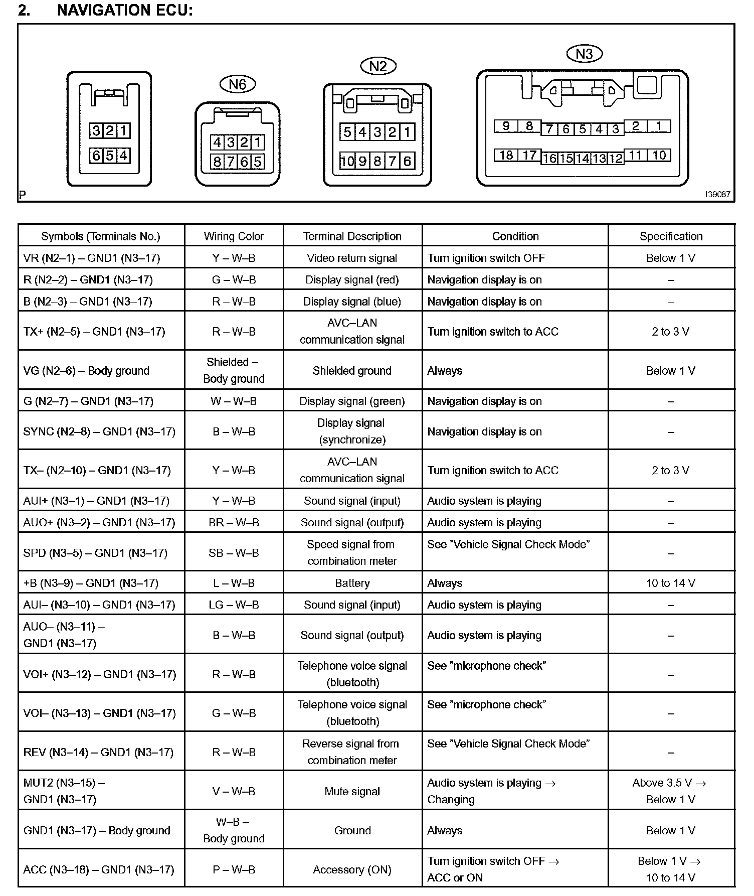 Terminals Of Control Module/Pinouts - Navigation ECU Part 2:
