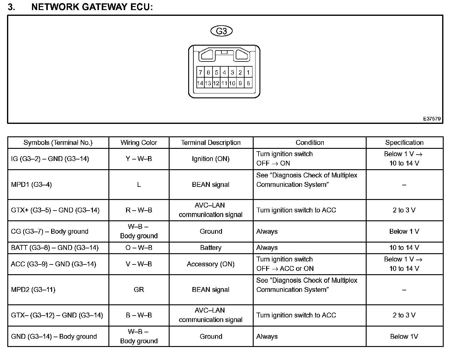 Terminals Of Control Module/Pinouts - Network Gateway ECU: