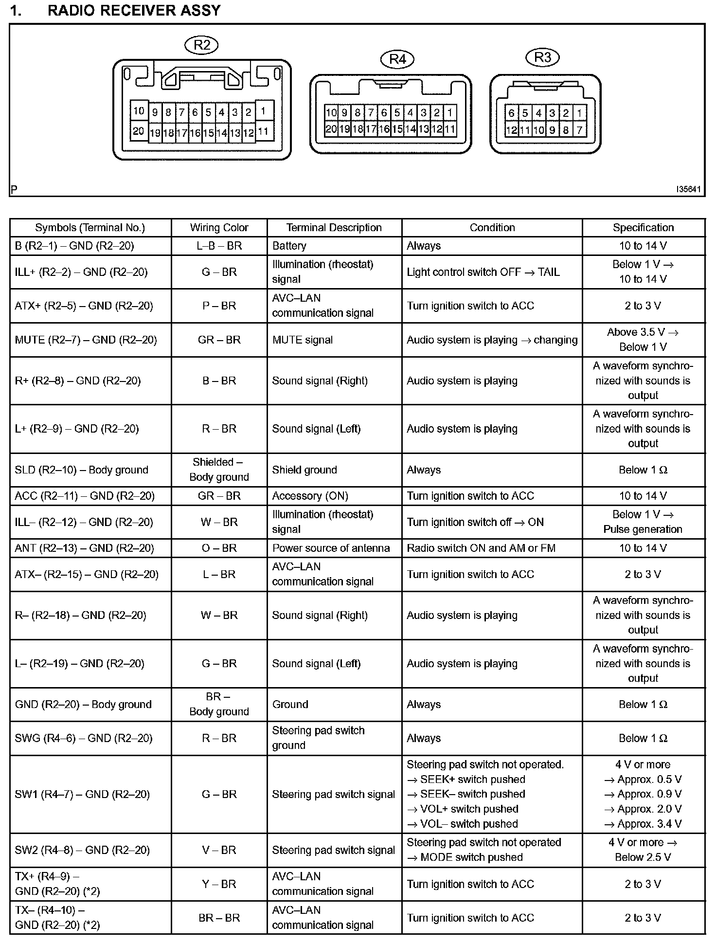 Terminals Of Control Module/Pinouts - Radio Receiver Assy Part 1: