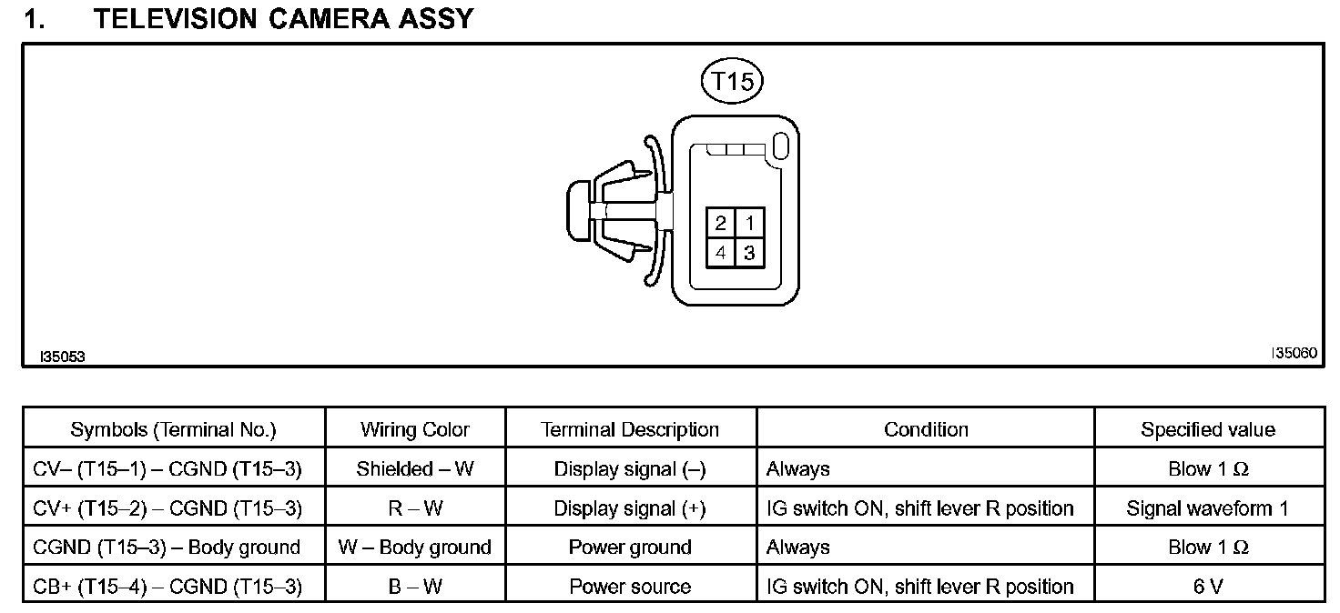 Terminals Of Control Module/Pinouts - Television Camera Assy: