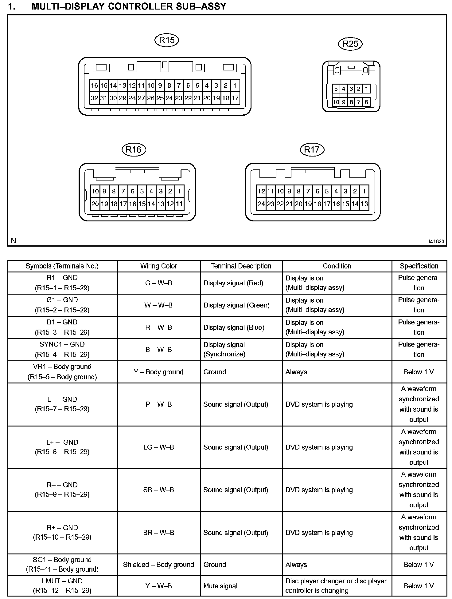 Terminals Of Control Module/Pinouts - Multi-Display Controller Sub-Assy Part 1: