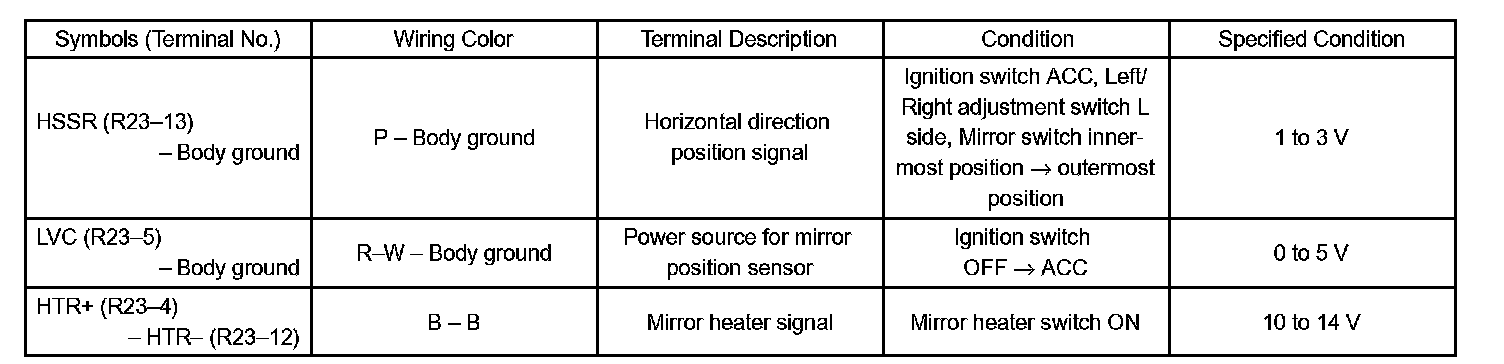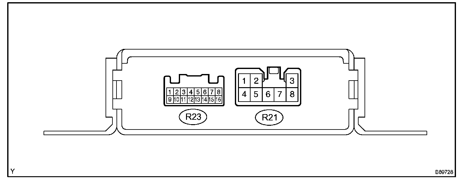 d. Check the voltage of each terminal of the R23 ECU connector.