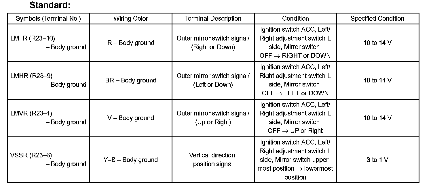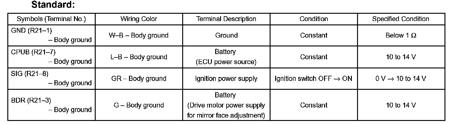 If the result is not as specified, replace the mirror assy or the ECU may be malfunctioning.