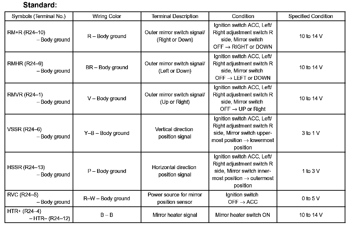 d. Check the voltage of each terminal of the R24 ECU connector.