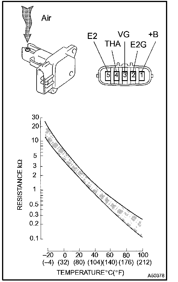 1. Using an ohmmeter, measure the resistance between terminals 4 (THA) and 5 (E2).