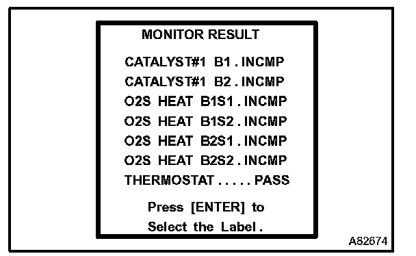 e. Select the hand-held tester menus: DIAGNOSIS, ENHANCED OBD II, MONITOR INFO and MONITOR RESULT. The monitor result appears after the component name.