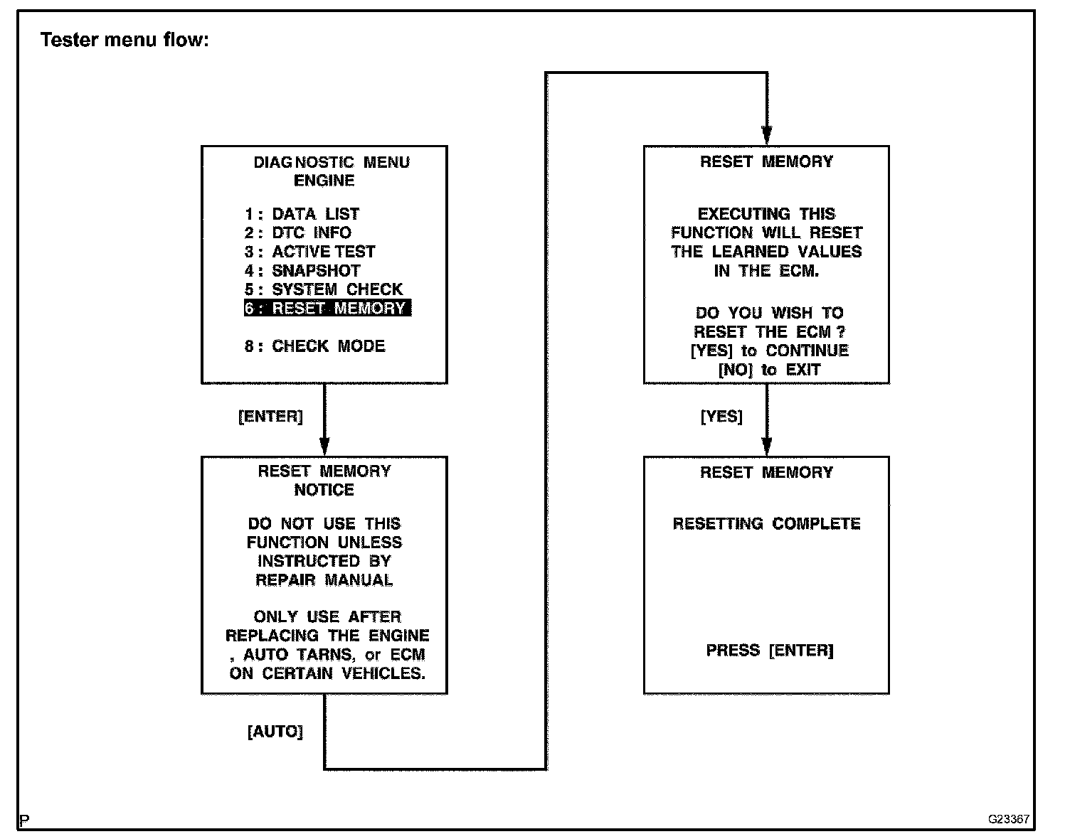 CAUTION: After performing the RESET MEMORY, be sure to perform the ROAD TEST described earlier.