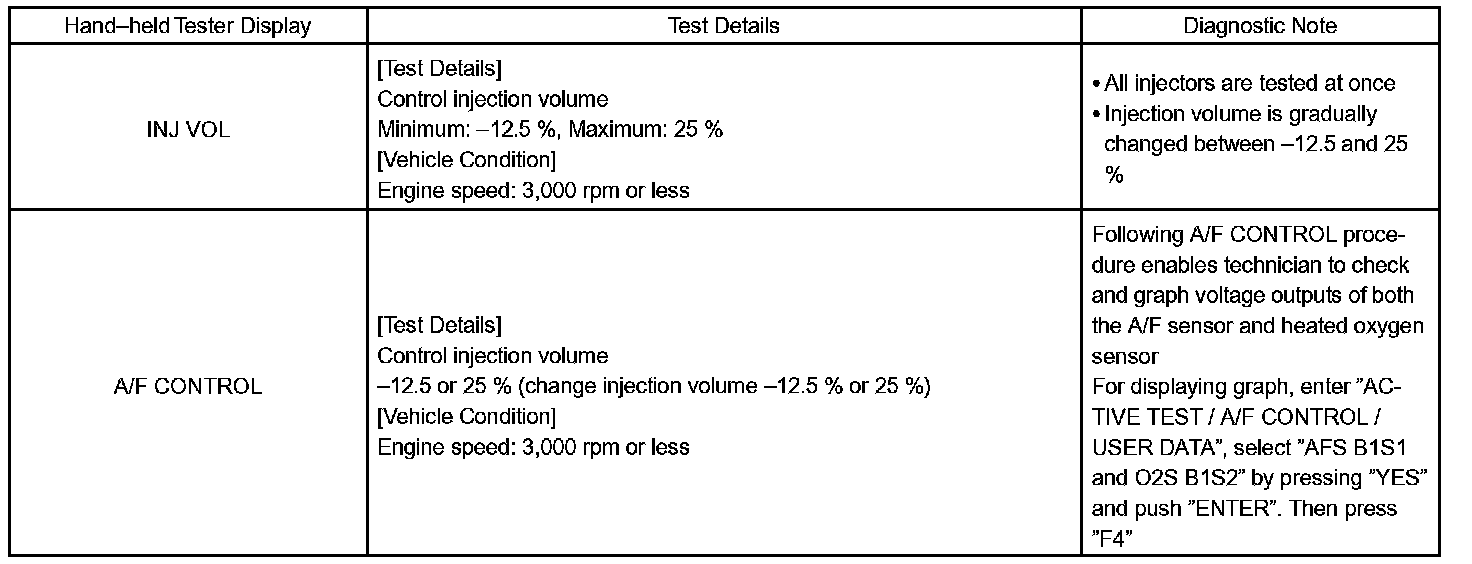 ACTIVE TESTHINT: Performing the hand-held tester ACTIVE TEST allows relay, VSV, actuator and other items to be operated without removing any parts. Performing the ACTIVE TEST early in troubleshooting is one way to shorten labor time. The DATA LIST can be displayed during the ACTIVE TEST.