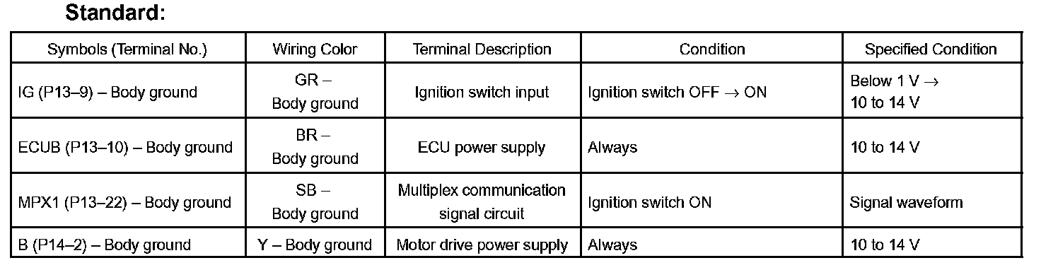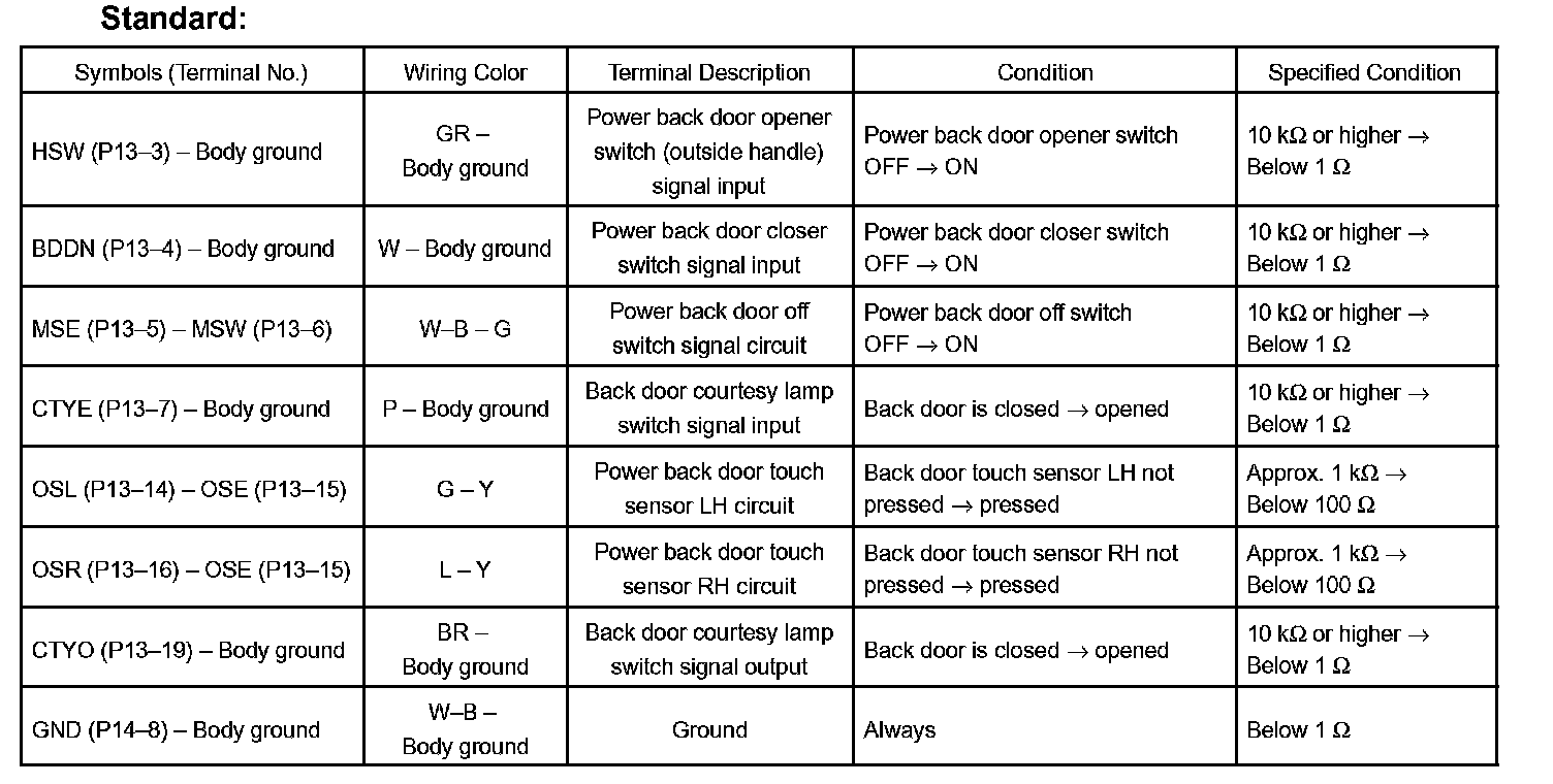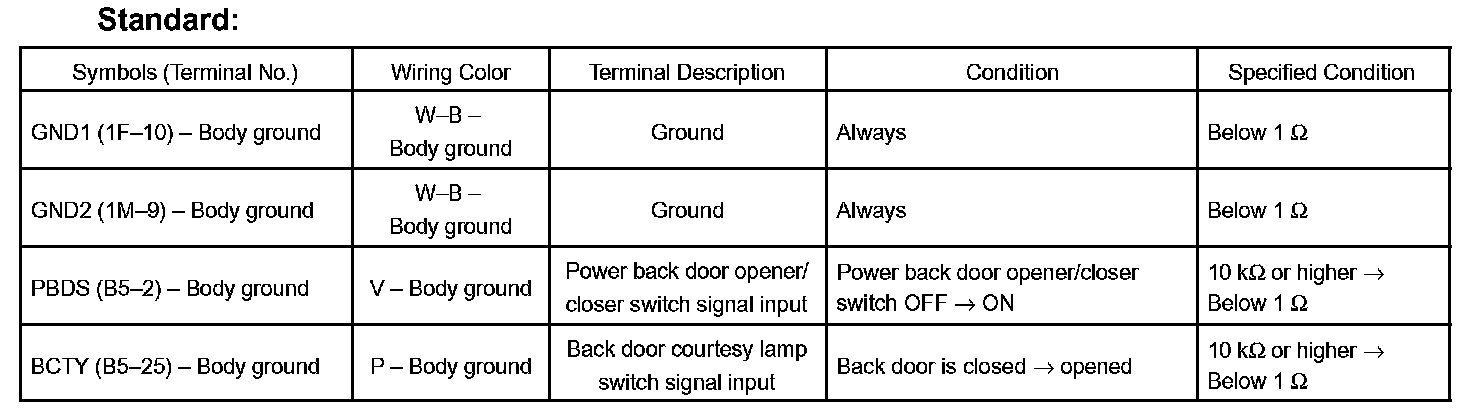 HINT: Use an oscilloscope to check the output voltages of the power back door off switch, buzzer and pulse sensor. If the result is not as specified, the ECU may have a malfunction.