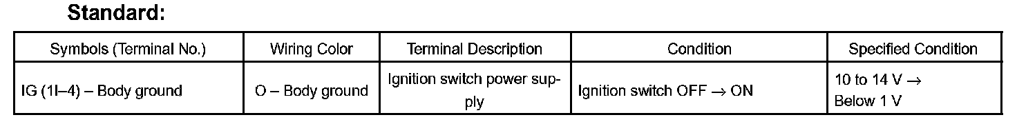 e. Measure the voltage of each terminals of the wire harness side connectors.