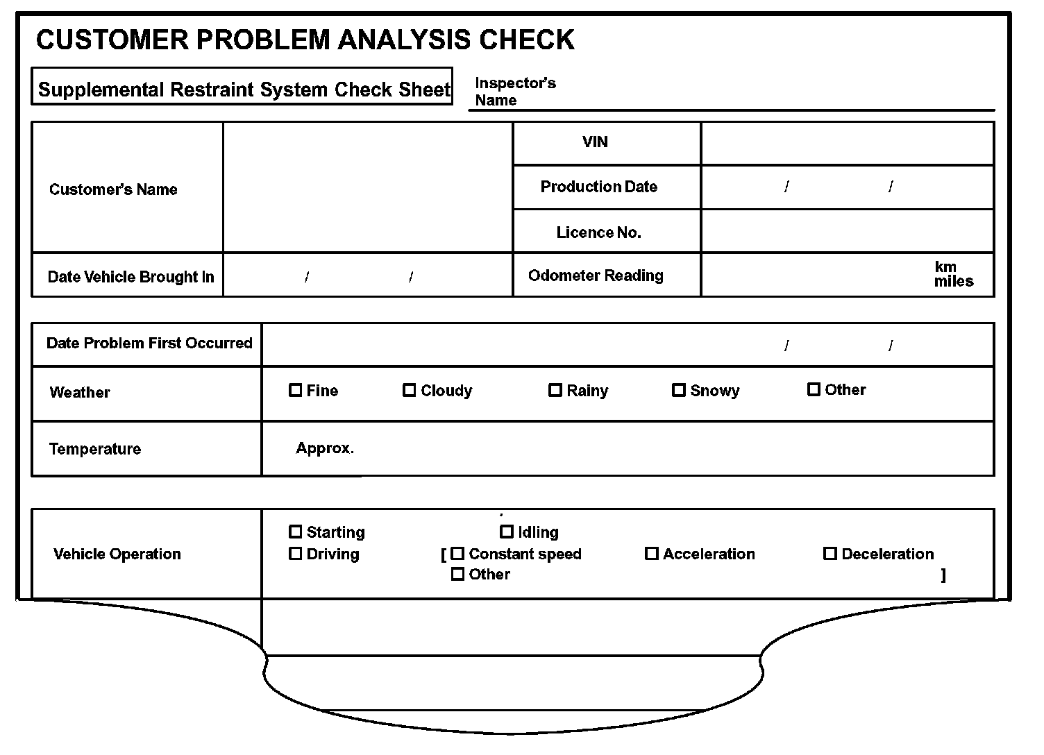 (Sample) Supplemental restraint system check sheet.