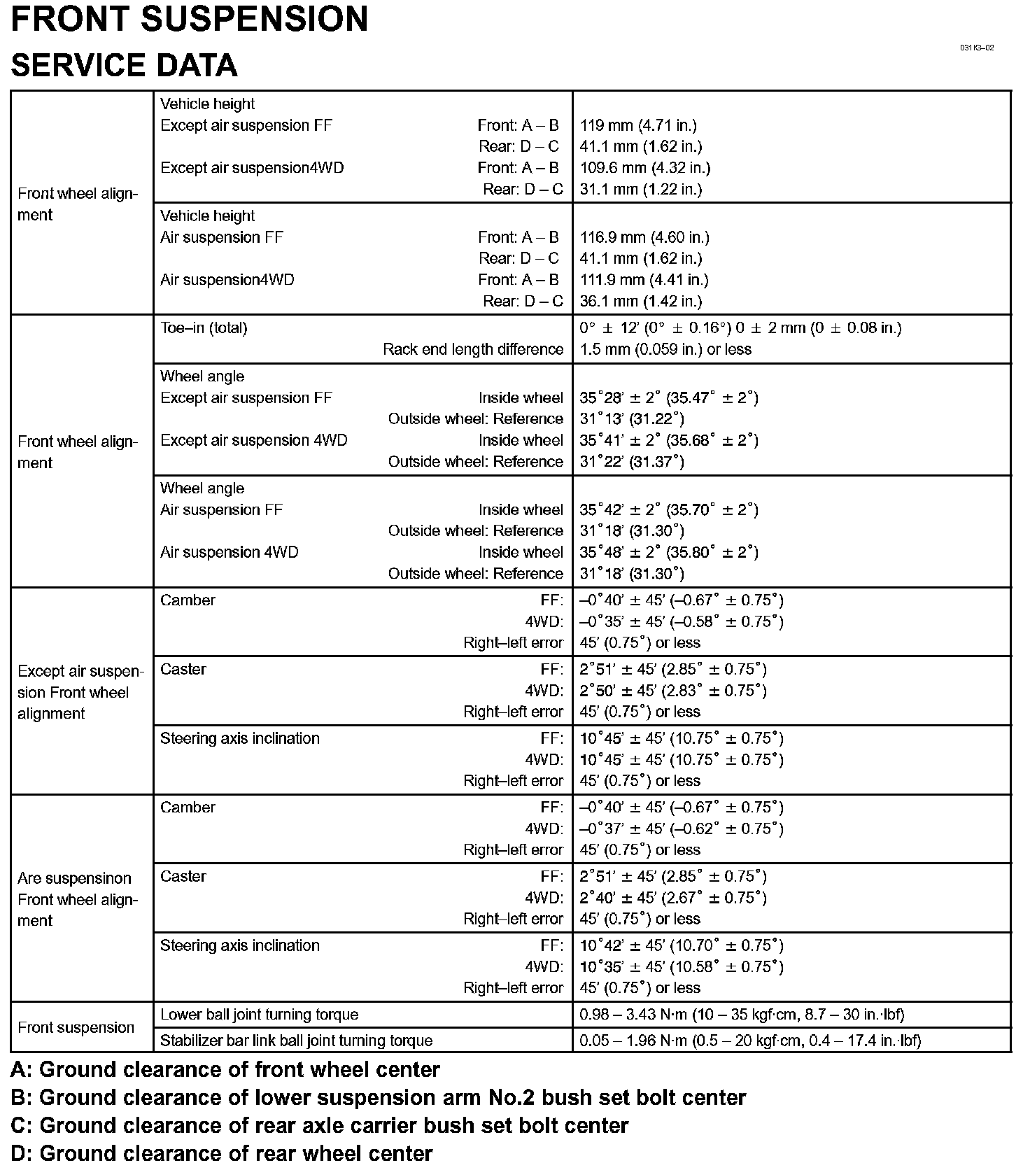 Front Suspension Specifications