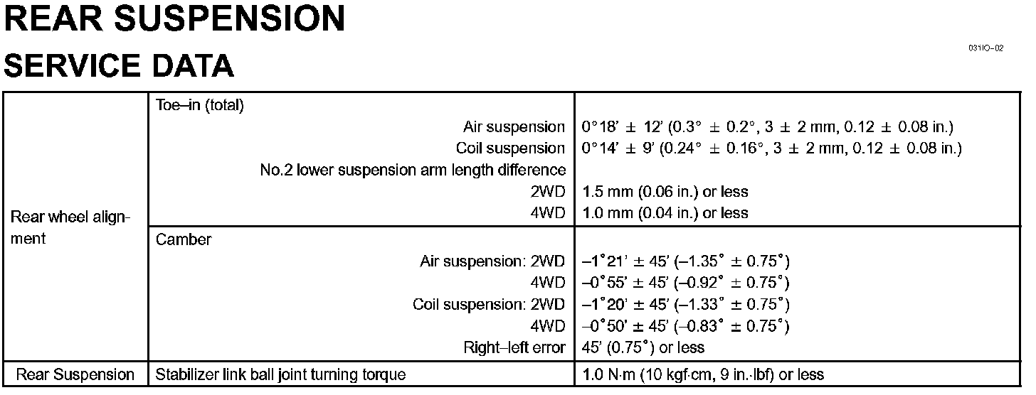 Rear Suspension Specifications