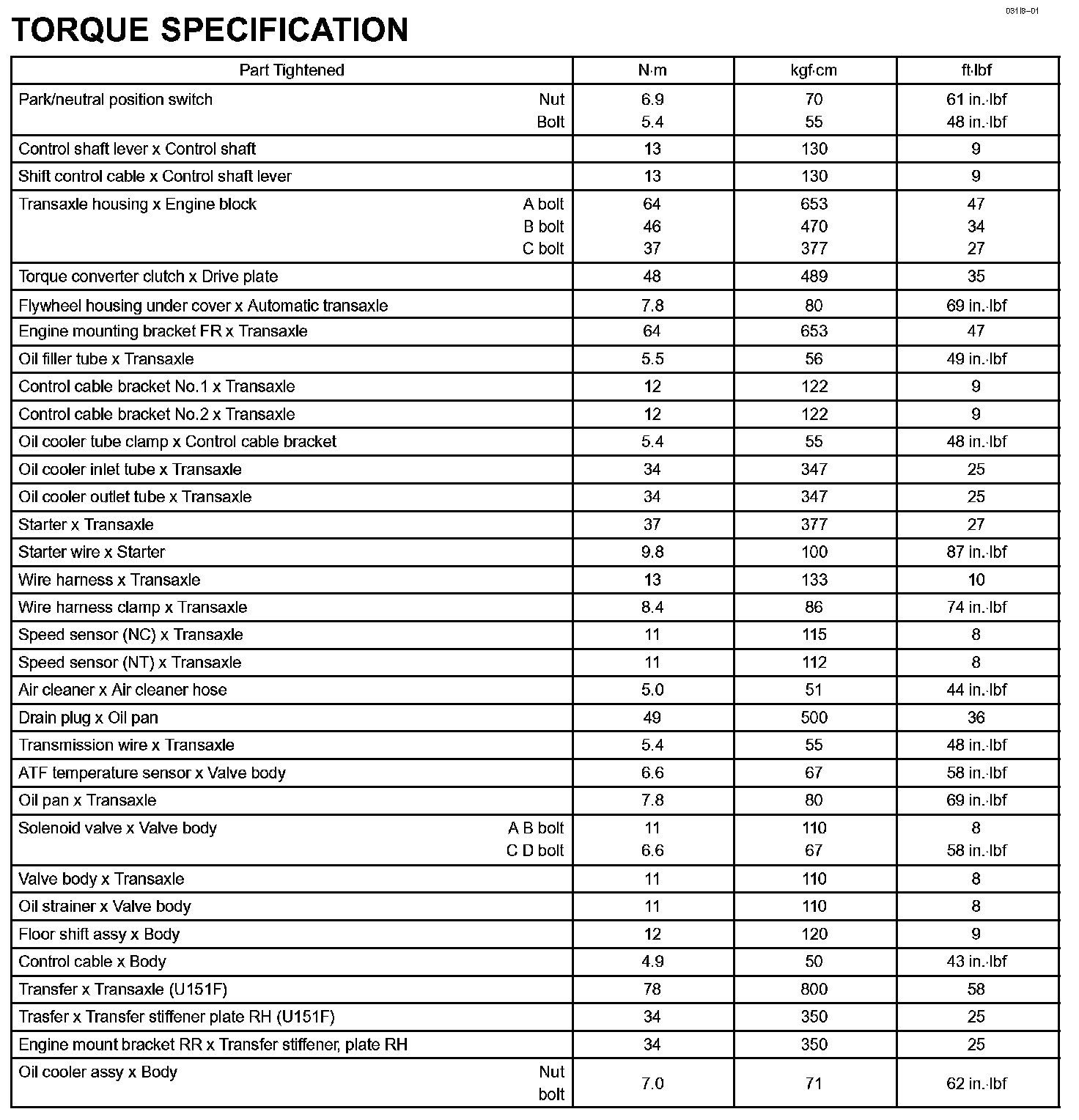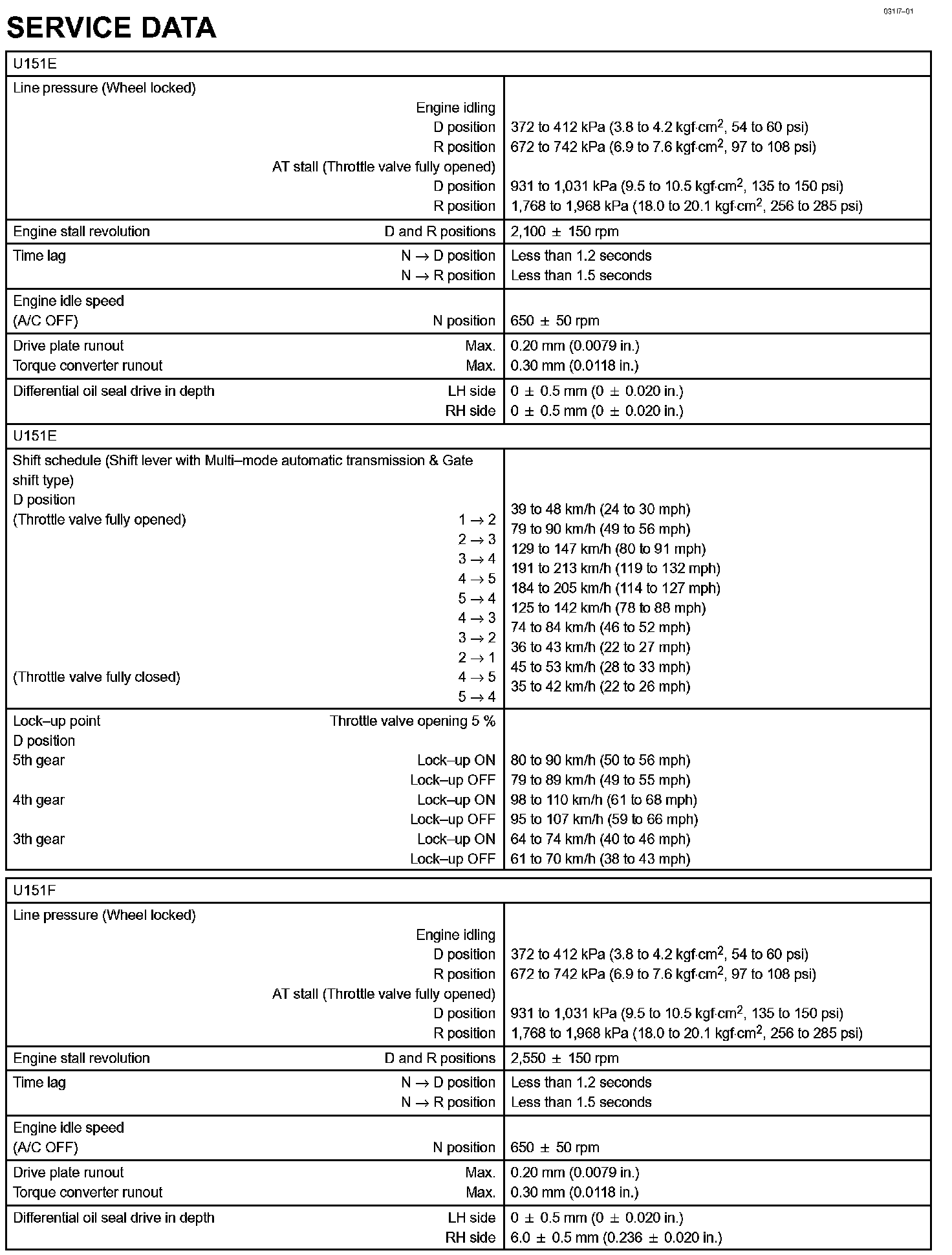 Automatic Transmission / Transaxle - Service Data Part 2: