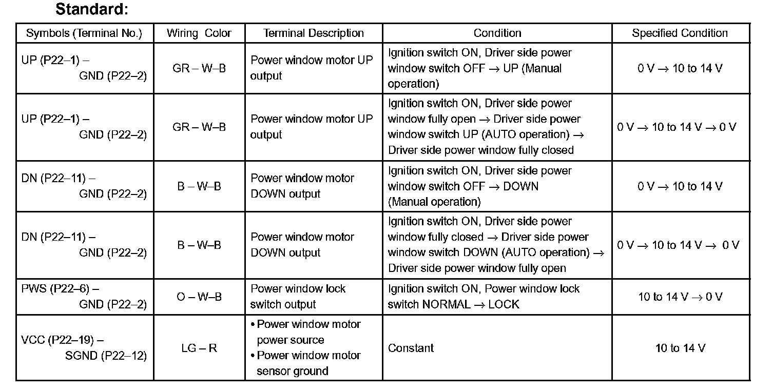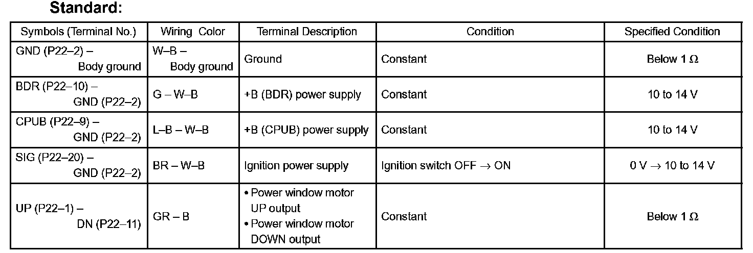 c. Reconnect the P22 switch connector and reset the power window motor (Refer to the pre check, step 16).