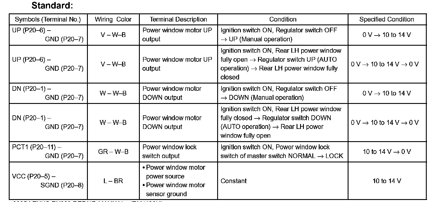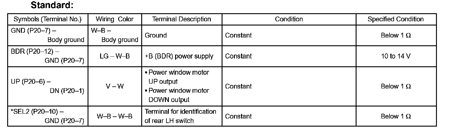 c. Reconnect the P20 switch connector and reset the power window motor (Refer to the pre check, step 16).