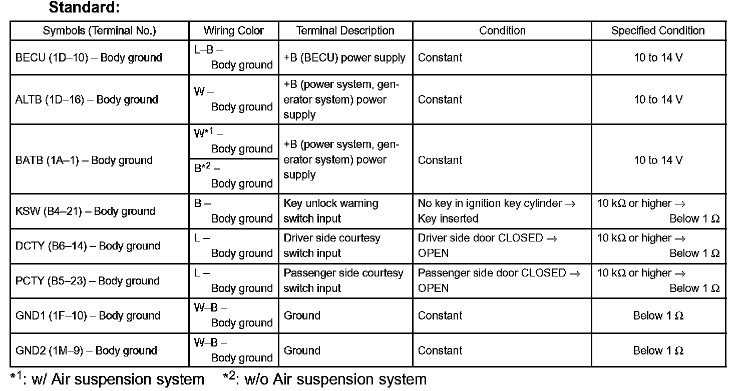 If the result is not as specified, the J/B assembly (body ECU) may have a malfunction.