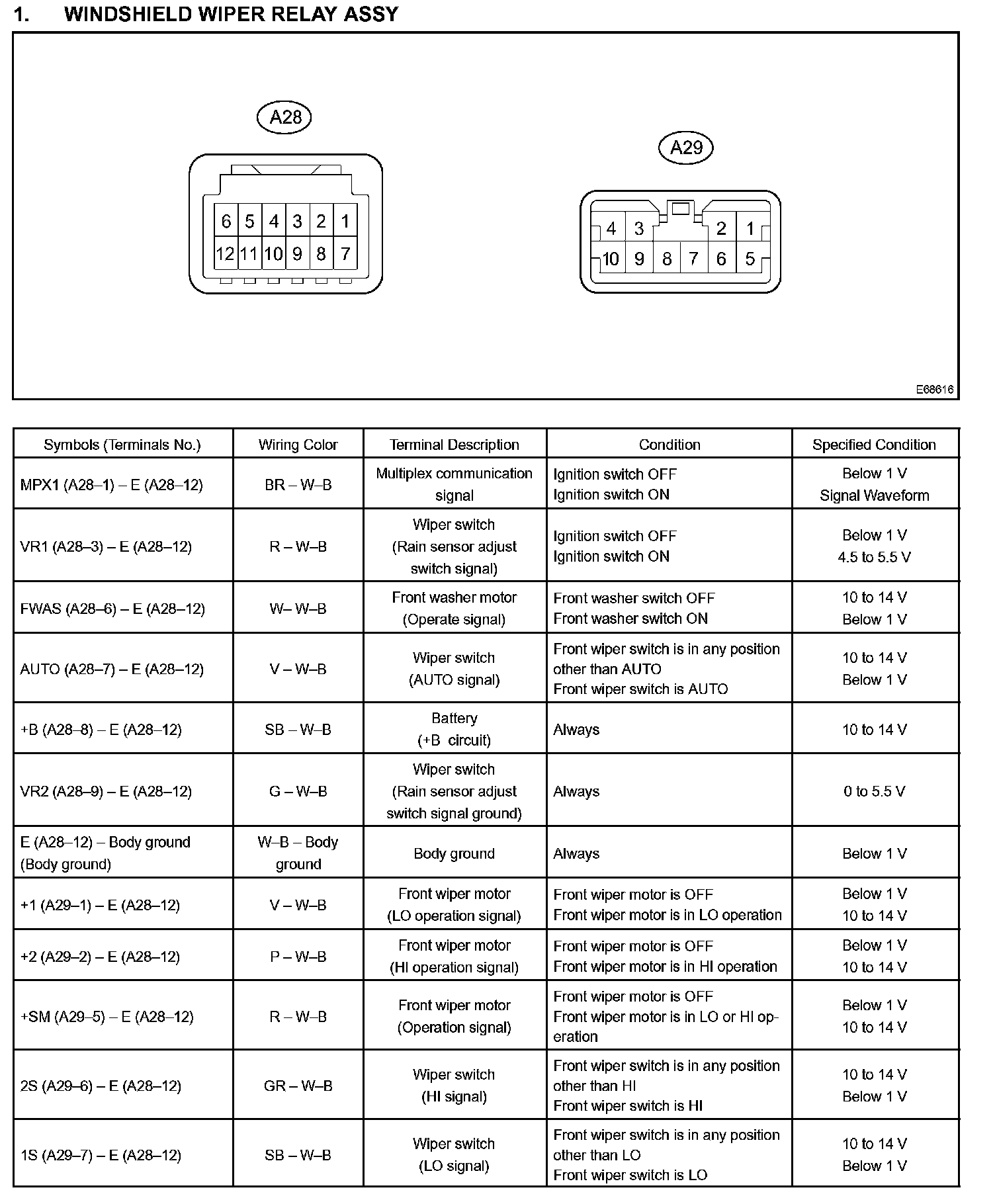 Terminals Of Control Module/Pinouts - Windshield Wiper Relay Assy Part 1: