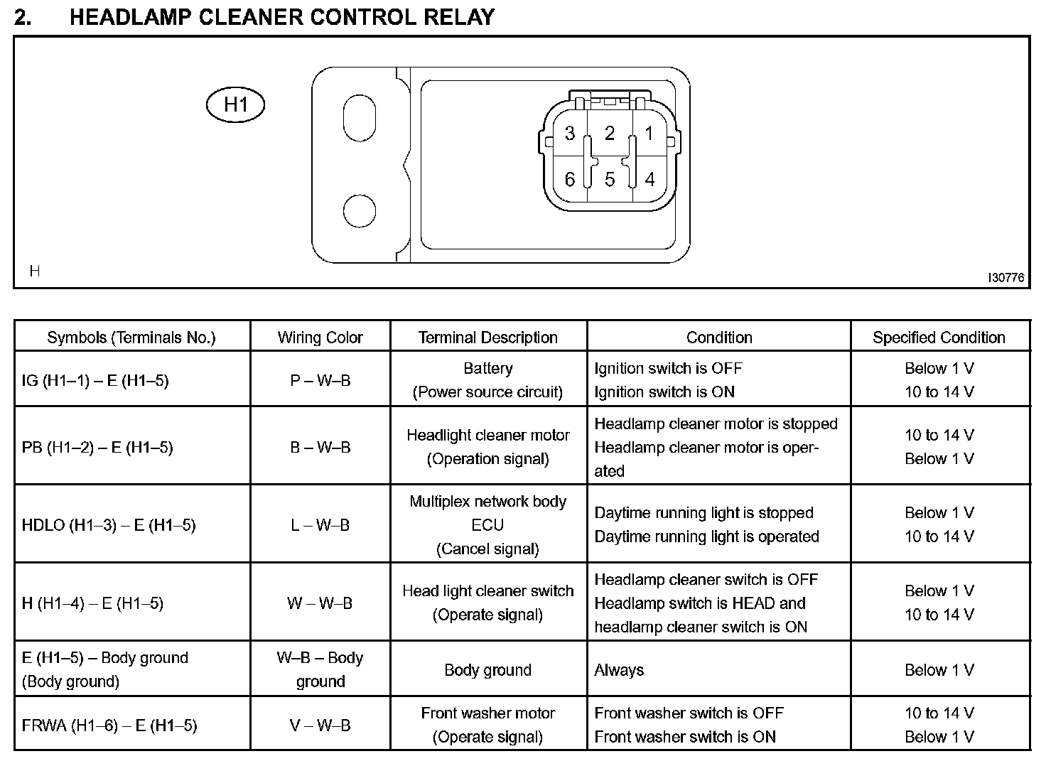 Terminals Of Control Module/Pinouts - Headlamp Cleaner Control Relay:
