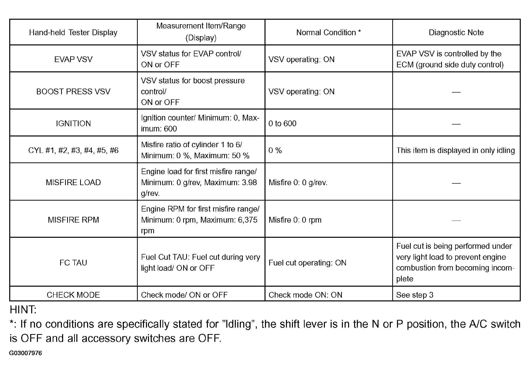 Using the hand-held tester DATA LIST allows switch, sensor, actuator and other item values to be read without removing any parts. Reading the DATA LIST early in troubleshooting is one way to shorten labor time.