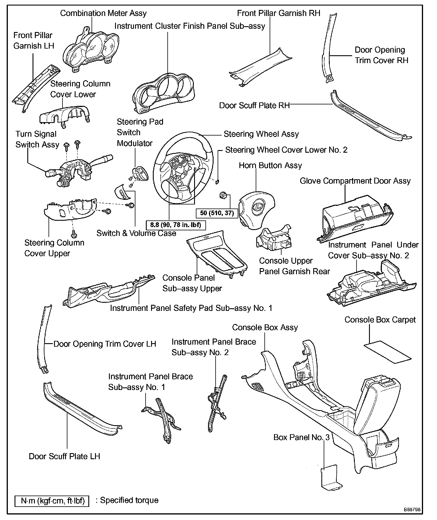 14. REMOVE INSTRUMENT PANEL SAFETY PAD SUB-ASSEMBLY NO.1
