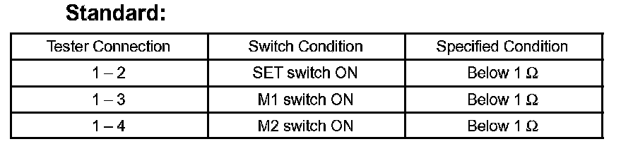If the result is not as specified, replace the memory switch.