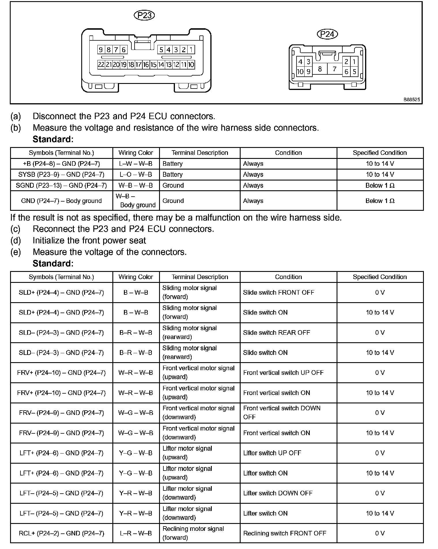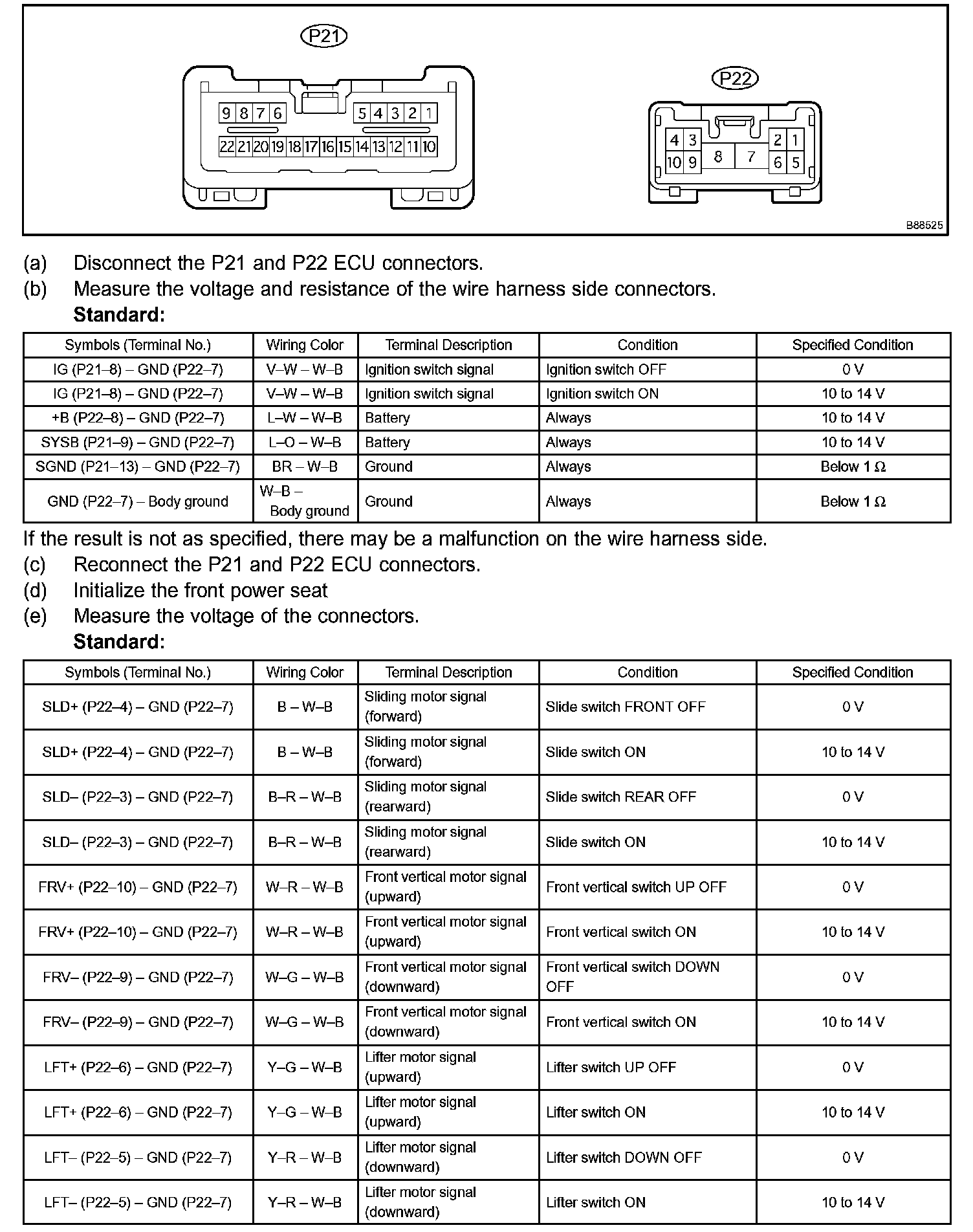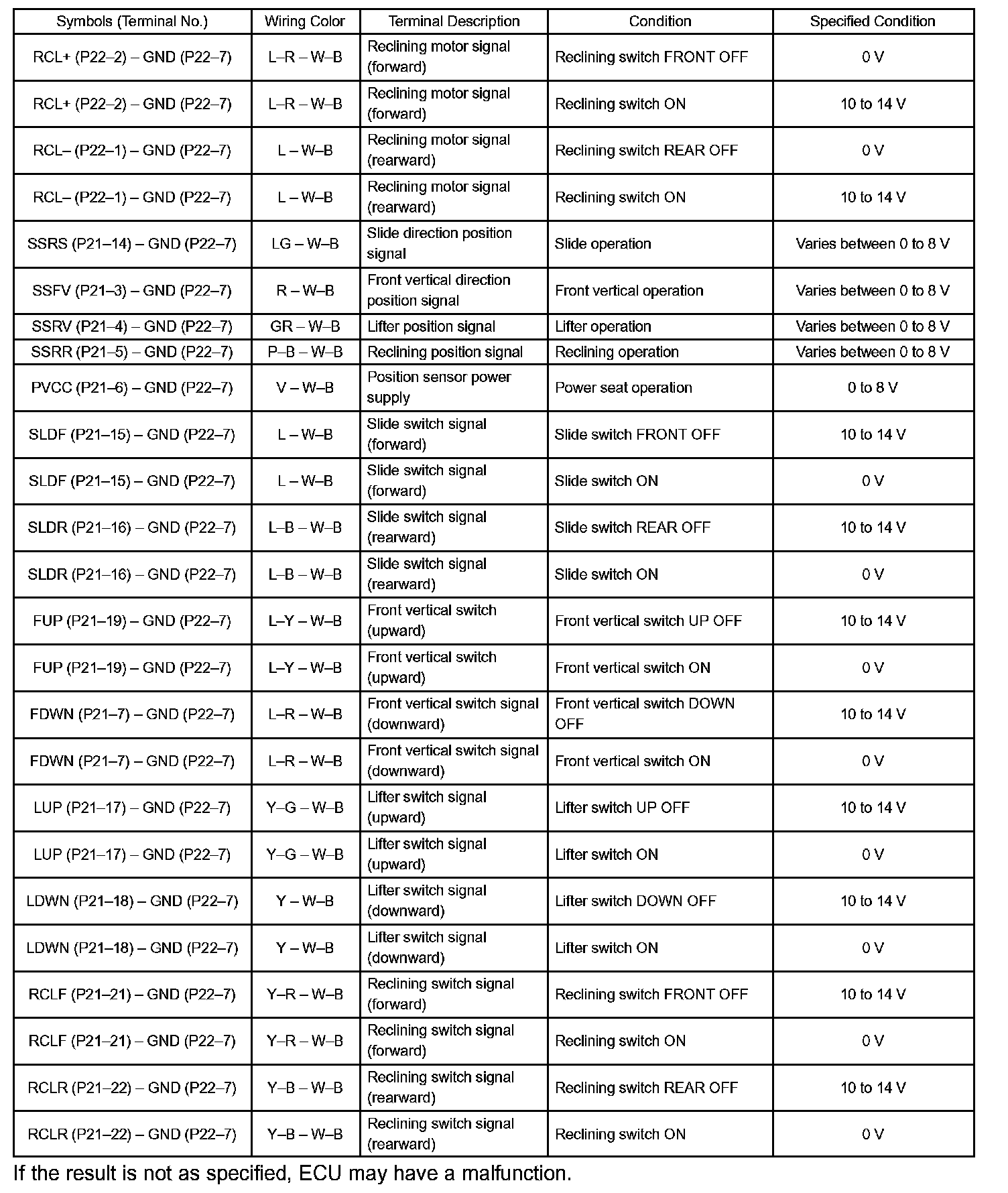 Terminals Of Control Module/Pinouts - Inspect Position Control ECU Assy (Passenger Side) - Part 1: