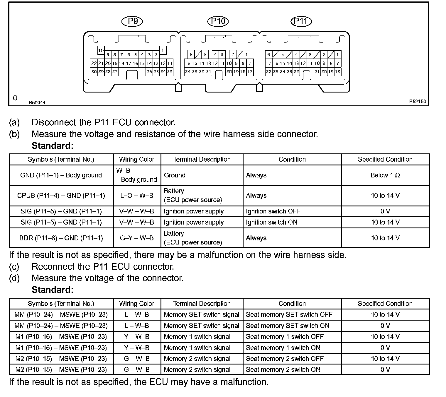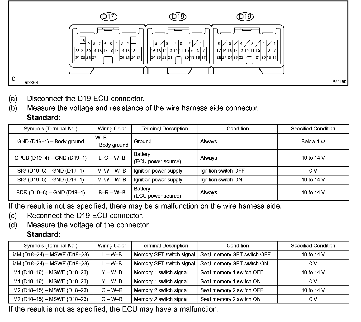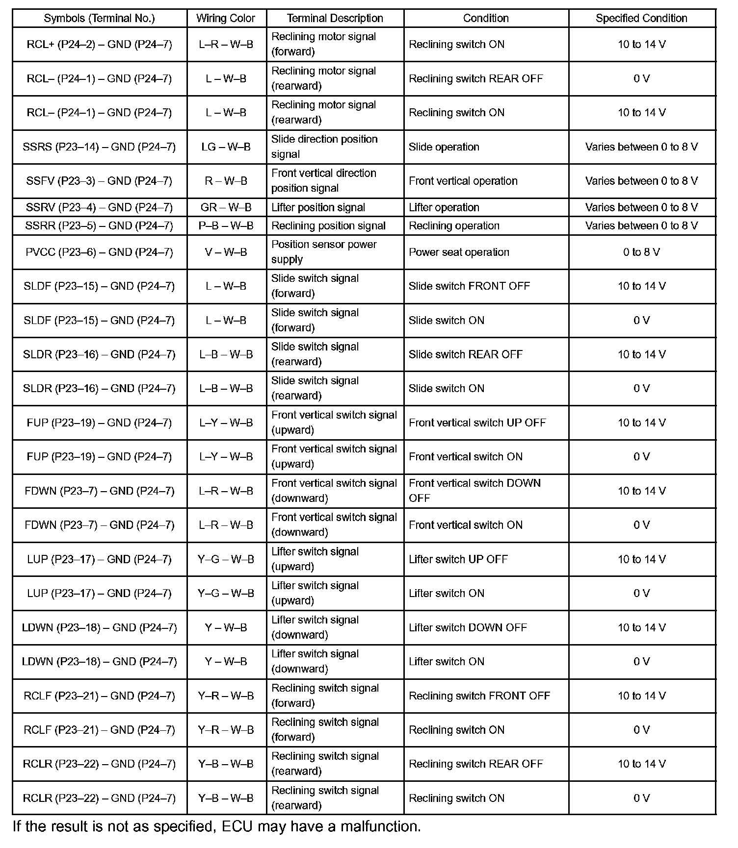 Terminals Of Control Module/Pinouts - Inspect Position Control ECU Assy (Driver Side) Part 1: