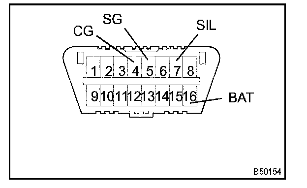 The vehicle uses ISO 9141-2 communication protocol. The terminal arrangement of the DLC3 complies with SAE J1962 and matches the ISO 9141-2 format.