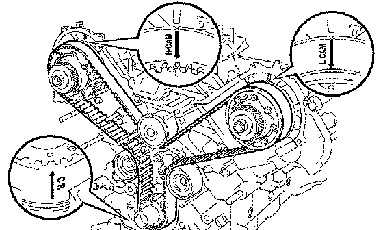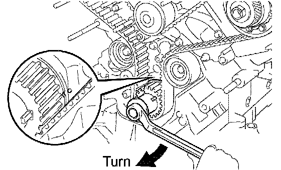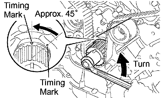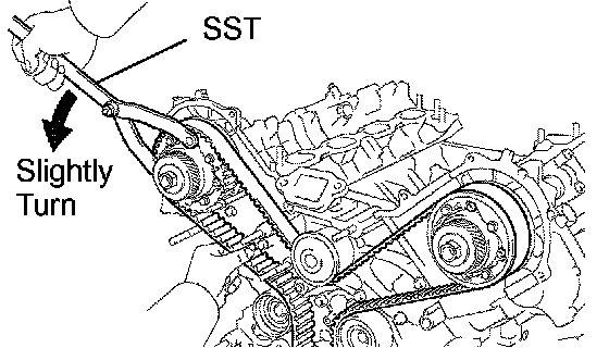 HINT: Turn the camshaft timing pulleys slightly clockwise to make installation of the timing belt easier.
