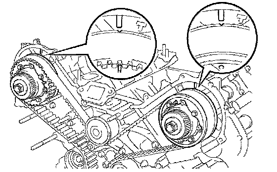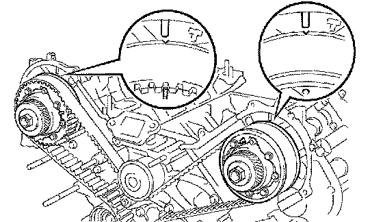 2. Check that each pulley aligns with the timing marks as shown in the illustration.