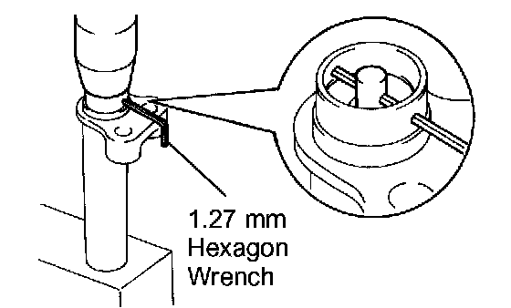 2. Align the holes of the push rod and housing. Pass a 1.27 mm hexagon wrench through the holes to keep the setting position of the push rod.