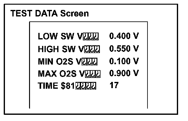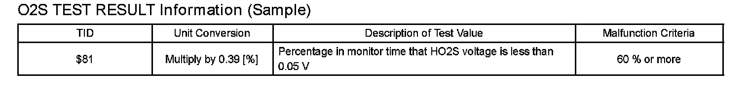 O2S TEST RESULTNOTE: The O2S Test Result is not applicable to the A/F sensor and HO2S heater. These test results are checked with the monitor status (mode 06). Refer to "Checking Monitor Status"