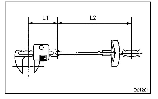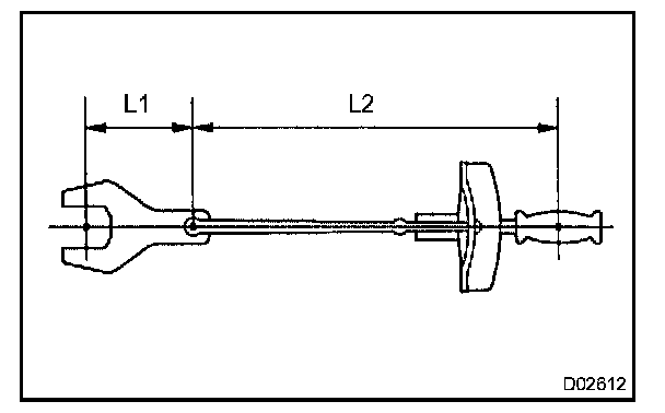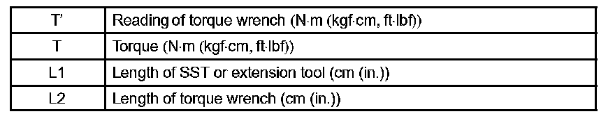 1. Use the formula below to calculate special torque values for situations where SST or an extension tool is combined with the torque wrench.