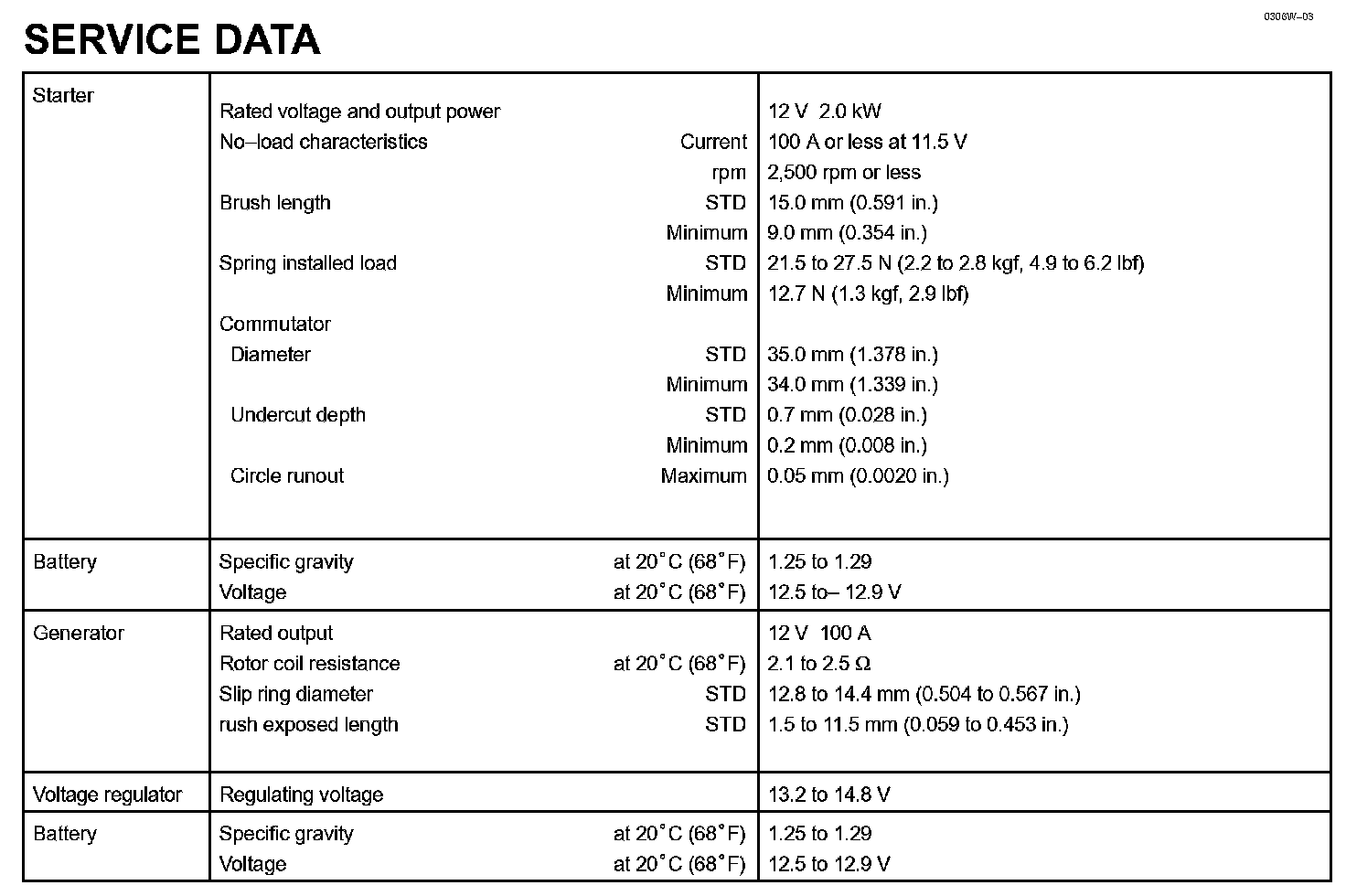 Starting & Charging - Service Data: