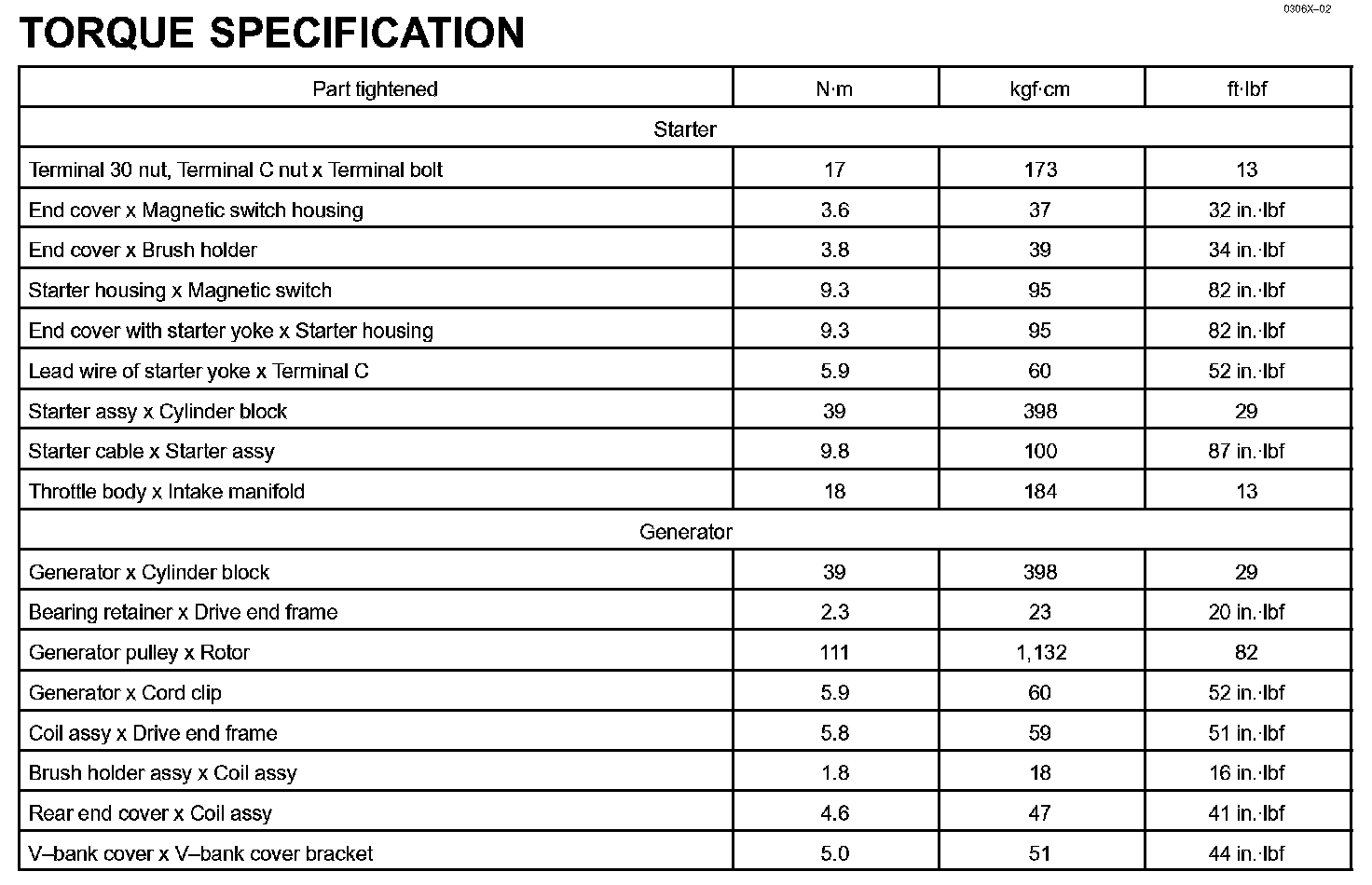 Starting & Charging - Torque Specification: