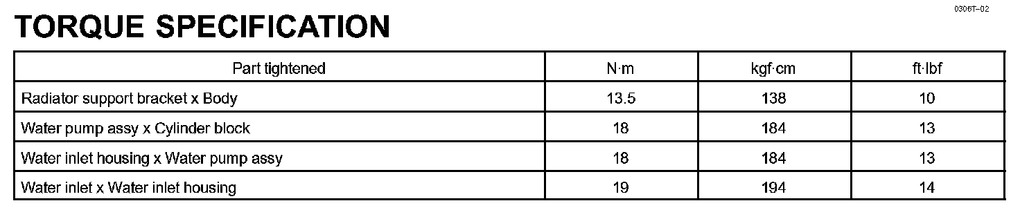 Cooling - Torque Specification: