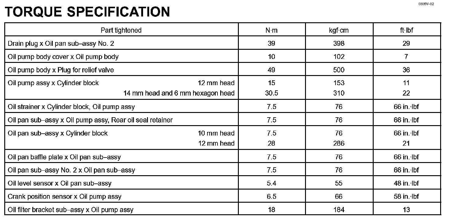 Lubrication - Torque Specification: