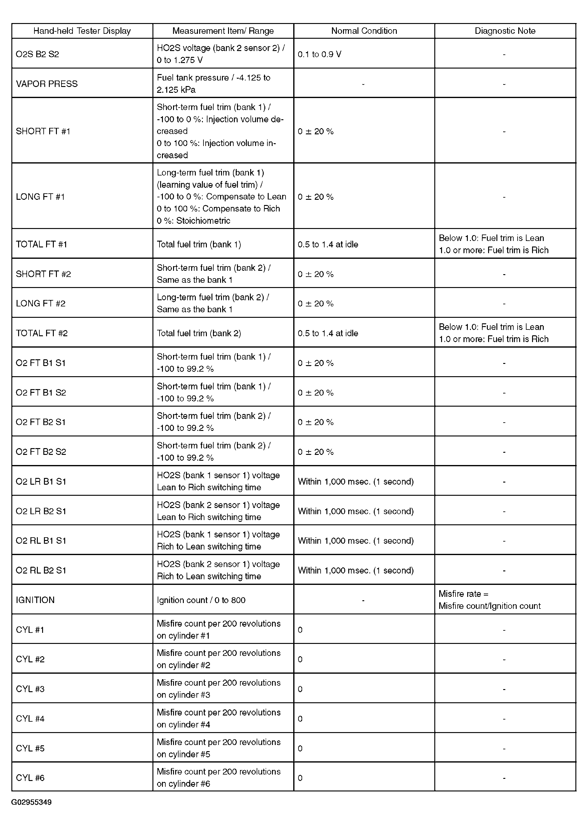 Fig 2: Hand-Held Tester Display Data List Table (2 Of 3)