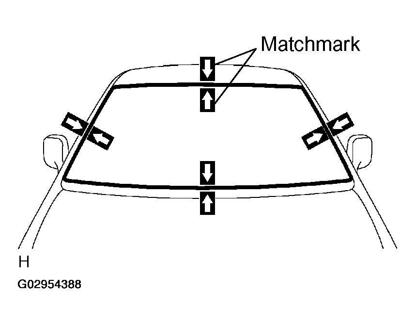 - Place matchmarks over the glass and vehicle body on the locations indicated.