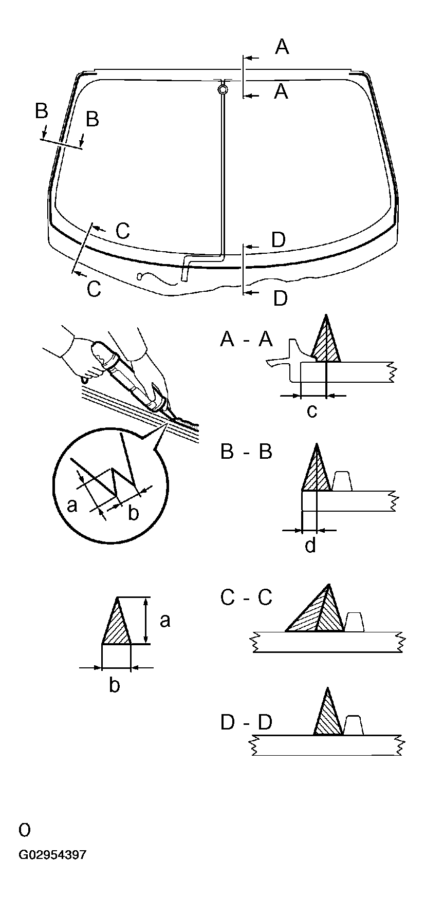 WINDOW GLASS ADHESIVE DAMArea Measurement a 7.0 mm (0.276 in.) b 48.5 mm (1.909 in.)