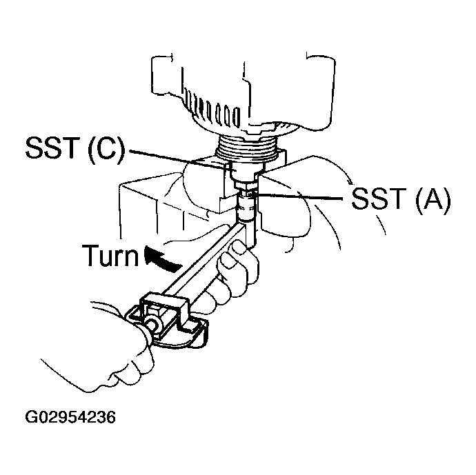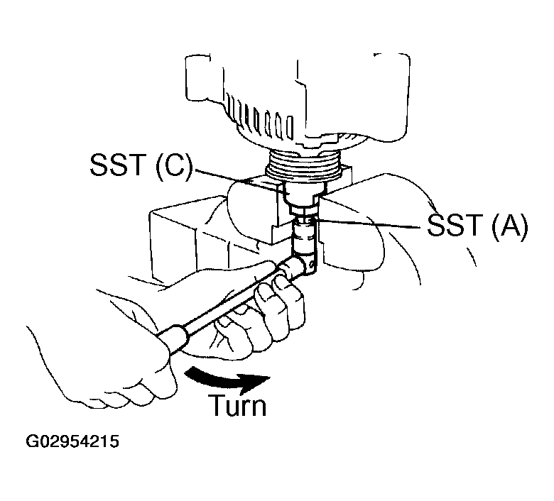 4. Insert SST (B) into SST (C), and attach the pulley nut to SST (C).