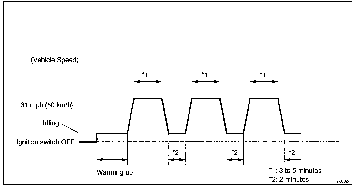 6. Drive the vehicle at 31 mph (50 km/h) or more for 3 to 5 minutes. *1