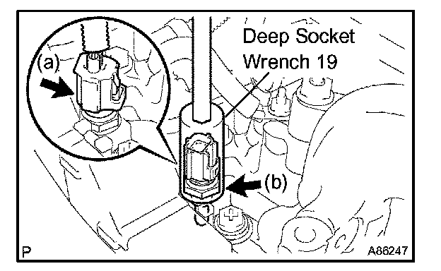 a. Using a deep socket wrench 19, install a new gasket and the engine coolant temperature sensor.