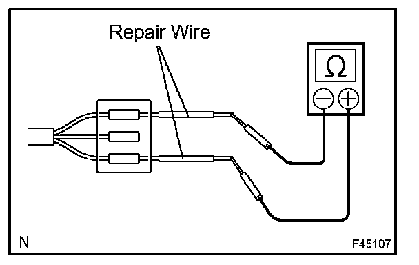 b. If it is impossible to check resistance from the back of the connector, use a repair wire to check it.
