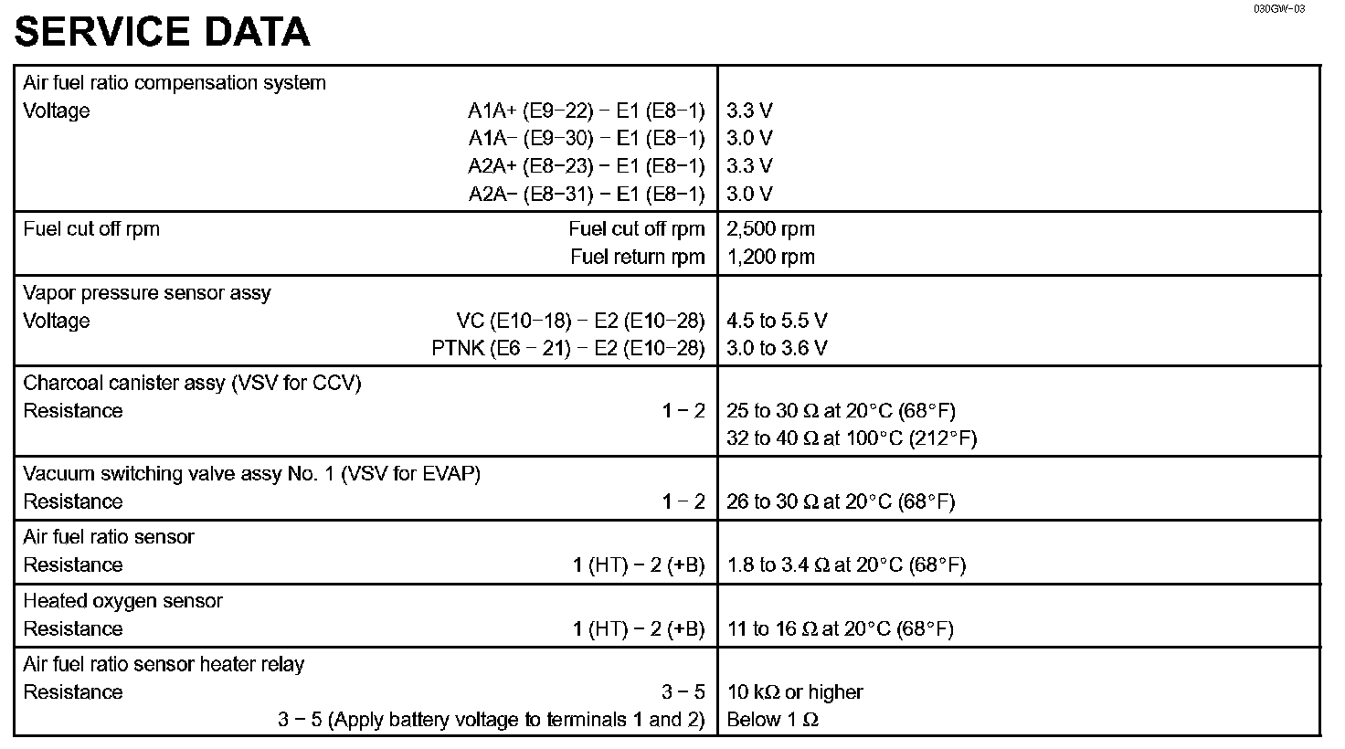 Emission Control-Service Data: