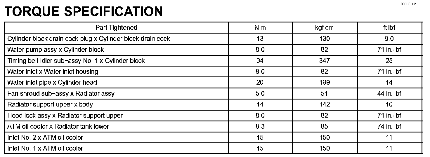 Cooling-Torque Specification: