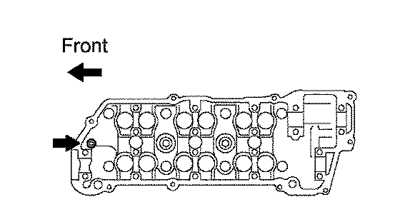 d. Mark the front side of each cylinder head bolt head with paint as shown in the illustration.