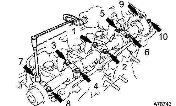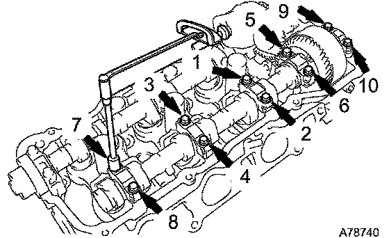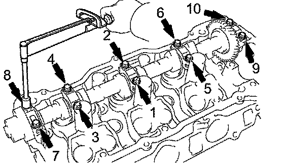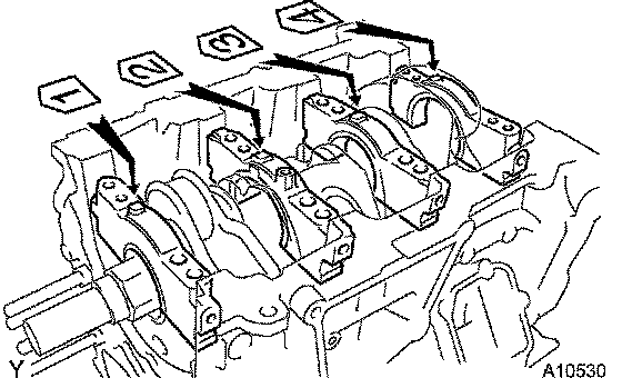 Uniformly tighten the 10 bearing cap bolts in the sequence shown in the illustration.