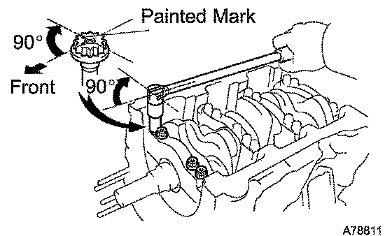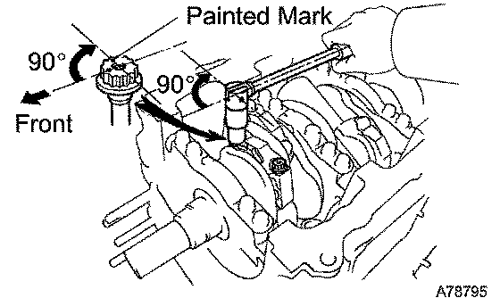 j. Retighten the bearing cap bolts by 90° in the same sequence as step (h).